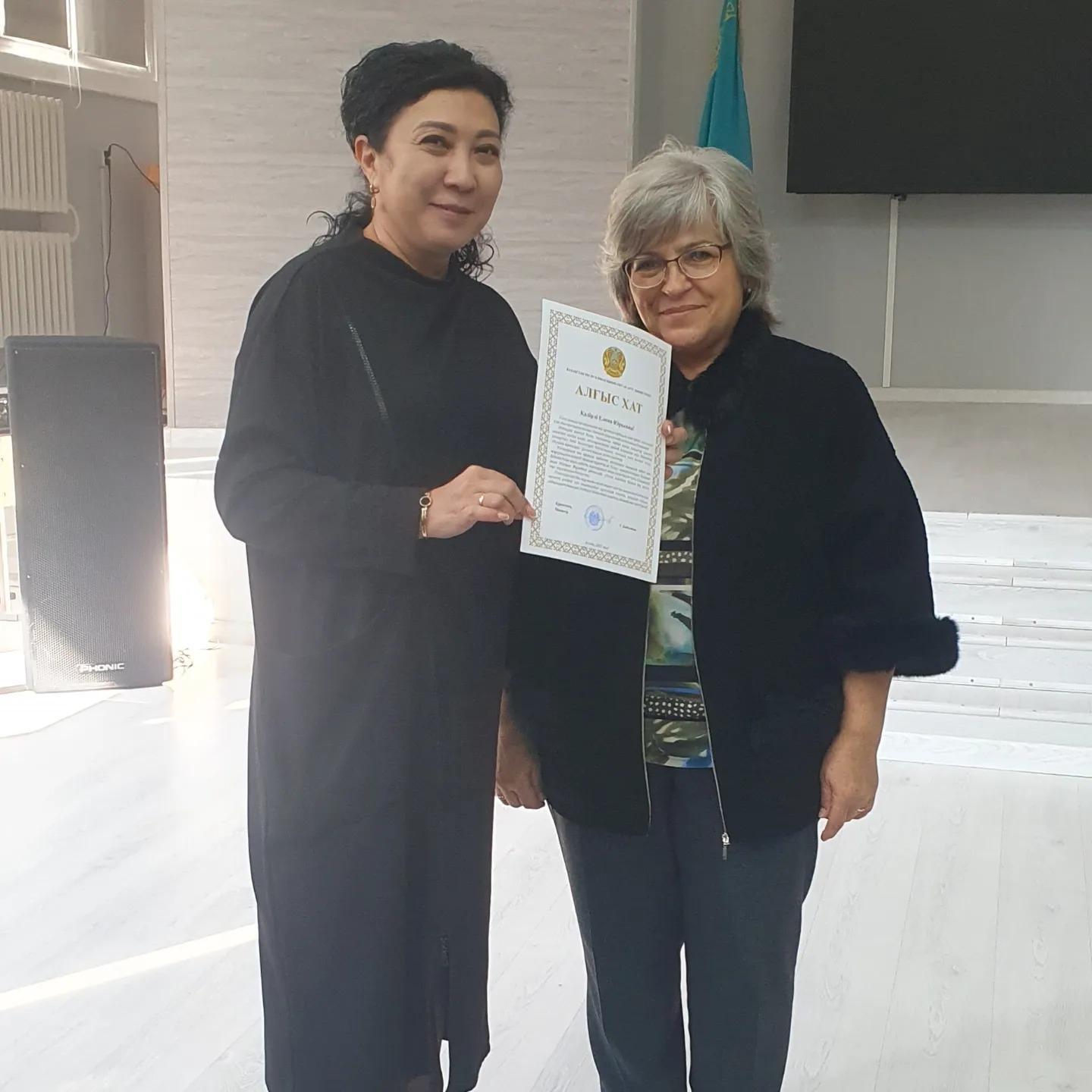 Білім саласындағы көп жылғы еңбегі үшін мектебіміздің ұстаздары Елена Юрьевна Караджаева мен Лидия Николаевна Масанованы Қазақстан Республикасының Білім министрі Ғани Бектайұлы Бейсембаевтың Алғыс хатымен марапатталғандарымен шын жүректен құттықтаймыз! Сүйікті ұстаздарымызға зор денсаулық, ұзақ ғұмыр, еңбектеріне шығармашылық табыс тілейміз!Поздравляем учителей нашей школы Караджаеву Елену Юрьевну и Масанову Лидию Николаевну,награжденных благодарственными письмами за многолетний труд в образовании от Министра Просвещения Республики Казахстан Гани Бектаевича Бейсембаева!