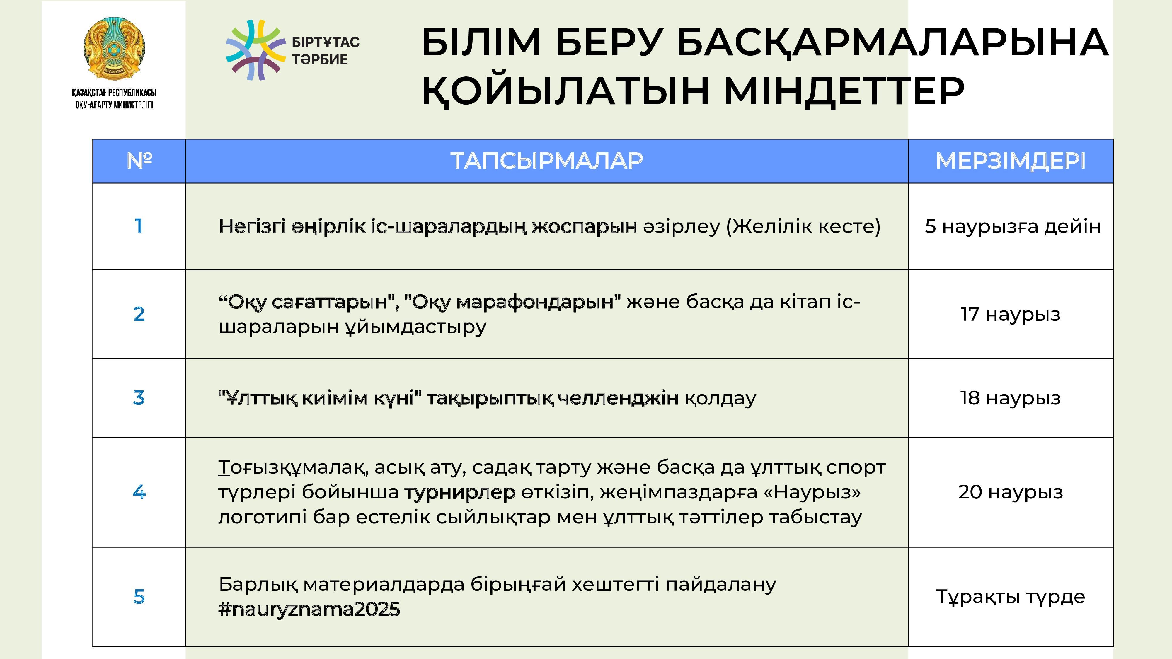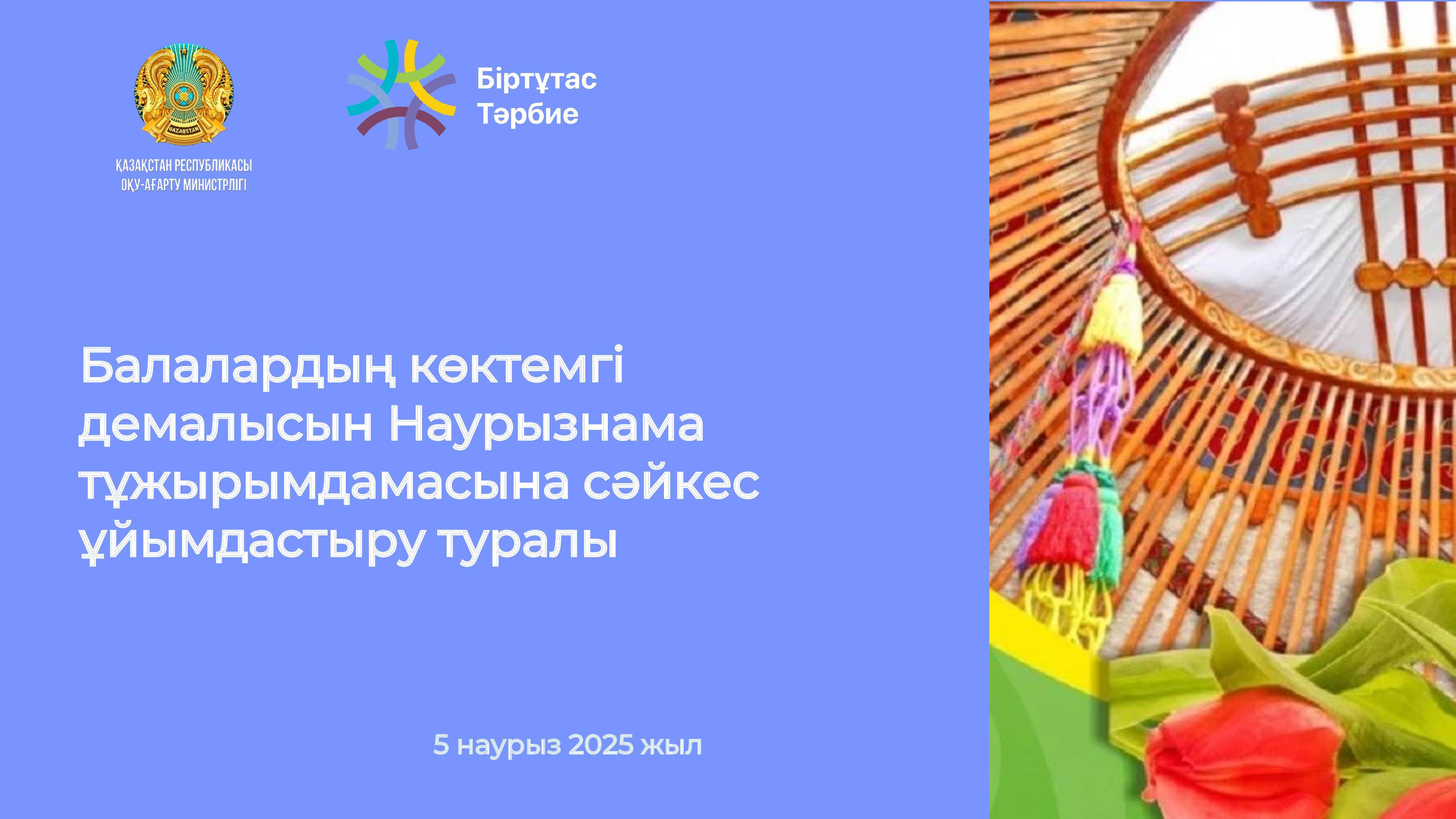 13 март 2025 0 1 2 3 4 5 Балалардың көктемгі демалысын Наурызнама тұжырымдамасына сәйкес ұйымдастыру туралы Балалардың көктемгі демалысын Наурызнама тұжырымдамасына сәйкес ұйымдастыру туралы Осы беттің QR-коды:QR-код этой страницы: