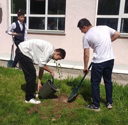 Ученики-выпускники КГУ «ОШ №121» приняли активное участие в экологическом челлендже по посадке деревьев.