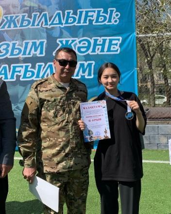 Учащаяся 10 «А» класса Асанова Динара достойно представила школу на городском этапе военно-патриотического сбора «Айбын-2025», посвящённого 80-летию Великой Победы.