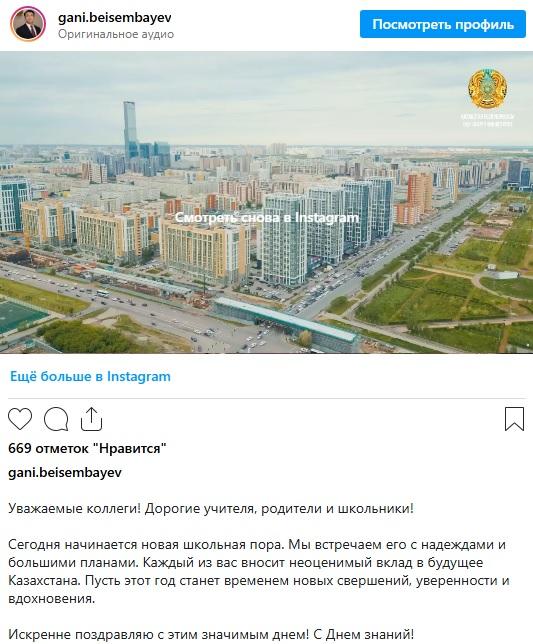 Министр просвещения Казахстана Гани Бейсембаев обратился с поздравлением к школьникам, их родителям и педагогам по случаю начала нового учебного года, передает Azattyq Rýhy.