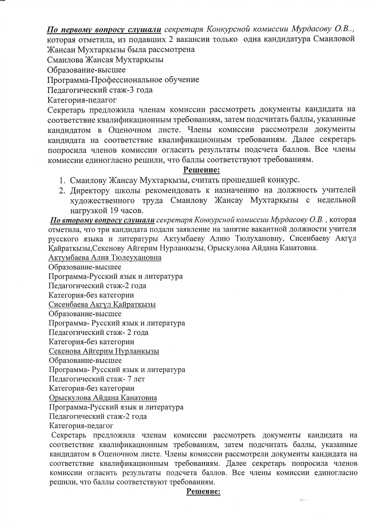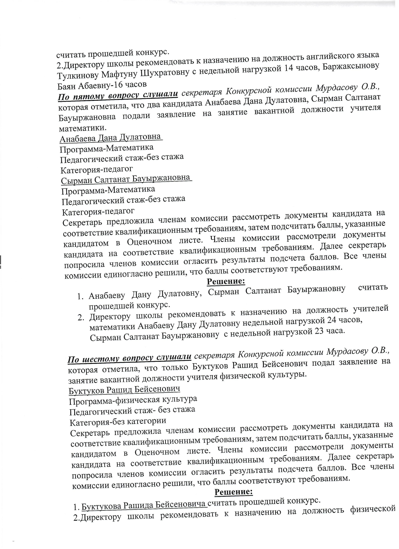 » » Протокол заседания Конкурсной комиссии по приему на занятие должности педагога№1