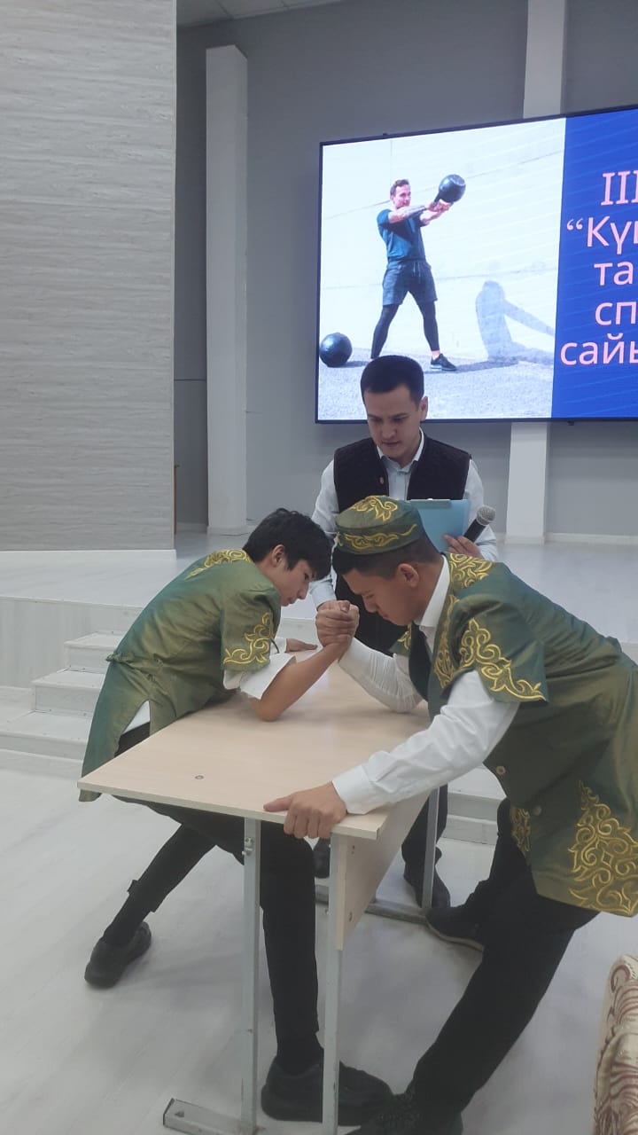 Сегодня в КГУ ОШ №121 прошел конкурс среди ученико "Жігіт сұлтаны-2024". Основная цель конкурса-повышение активности учеников, формирование личностных, творческих навыков. Конкурс состоял из 4 этапов. На первом этапе участники представили себя. Во втором ребята читали стихи. На третьем этапе участники показали свои знания. А на четвертом этапе состязались в гиревом спорте. По решению жюри 1 место занял Амангельдиев Арнур ученик 9 «В» класса.