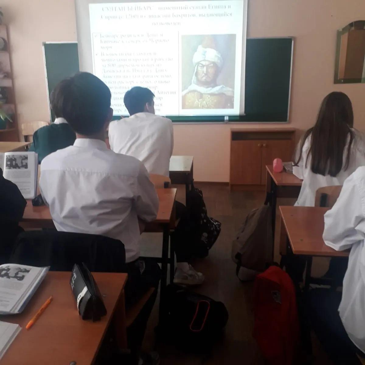Бейбарыс сұлтанның 800 жылдығына орай ЖББМ 121-де «Бейбарыс сұлтан ерлігі» тақырыбында сынып сағаттары өтті.В честь 800-летие Бейбарыс султану по КГУ ОШ 121 прошли классные часы на тему "Бейбарыс султаннын ерлiгi"