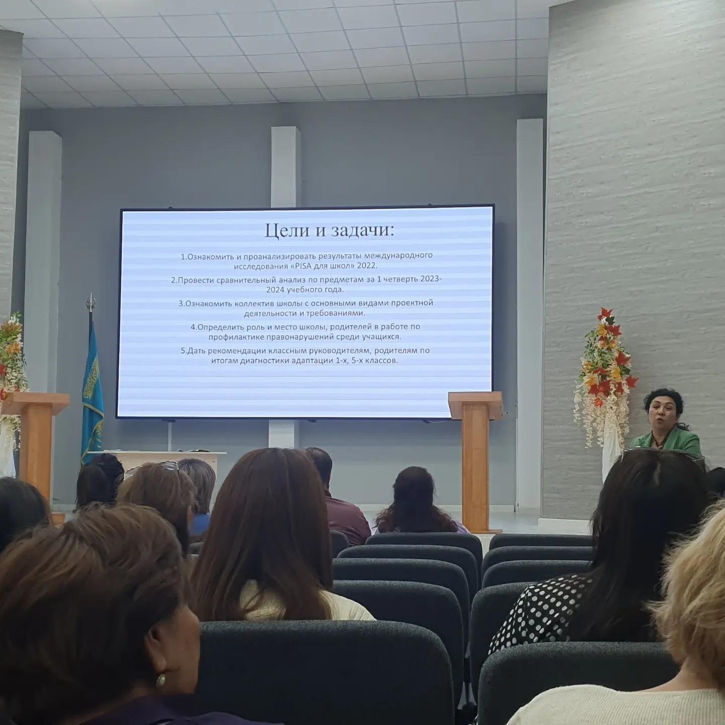 №121 ЖББМ бойынша педагогикалық кеңес өтті. Педагогикалық кеңес ұйымдағы орталық буын ретінде барлық әдістемелік жұмыс барысында келесі функцияларды орындайды: - педагогикалық ұжымның кәсіби дамуын және олардың шығармашылық әлеуетін дамытуды басқарады; - оқу қызметінің тәжірибесіне жетістіктерді енгізеді қазіргі педагогика ғылымы, оқыту мен тәрбиелеудің тиімді технологиялары мен әдістері; - педагогикалық тәжірибені зерделейді, тиімділігін таратады педагогикалық тәжірибе; - педагогикалық ұжымның шығармашылық бастамаларын дамытады.По КГУ ОШ 121 прошео педагогический совет. Педагогический совет как центральное звено в организации всей методической работы выполняет следующие функции: