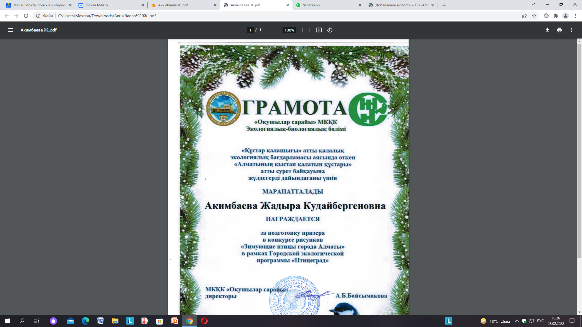 КГУ «Общеобразовательная школа №121» Управления образования города Алматы