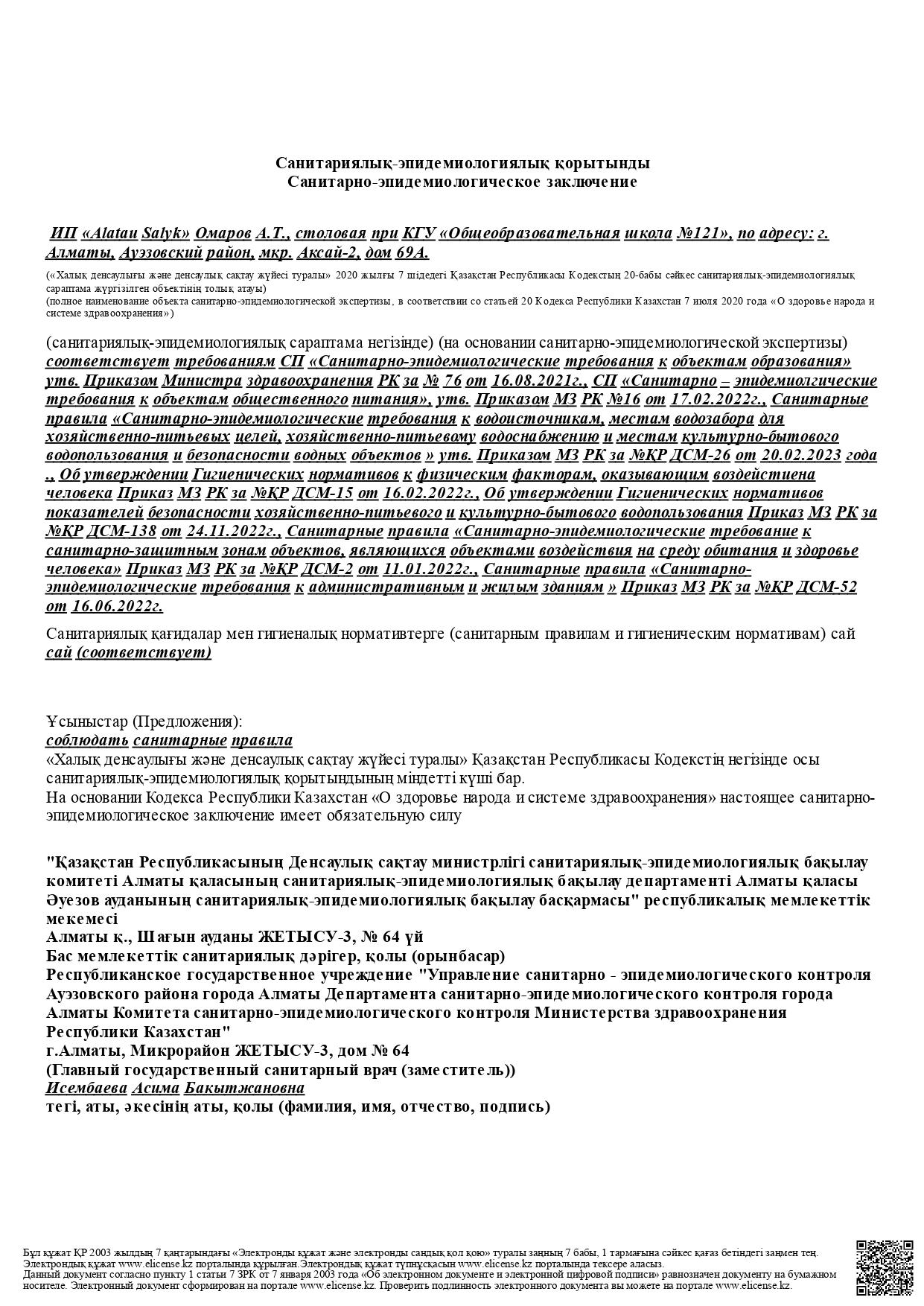 КГУ «Общеобразовательная школа №121» Управления образования города Алматы