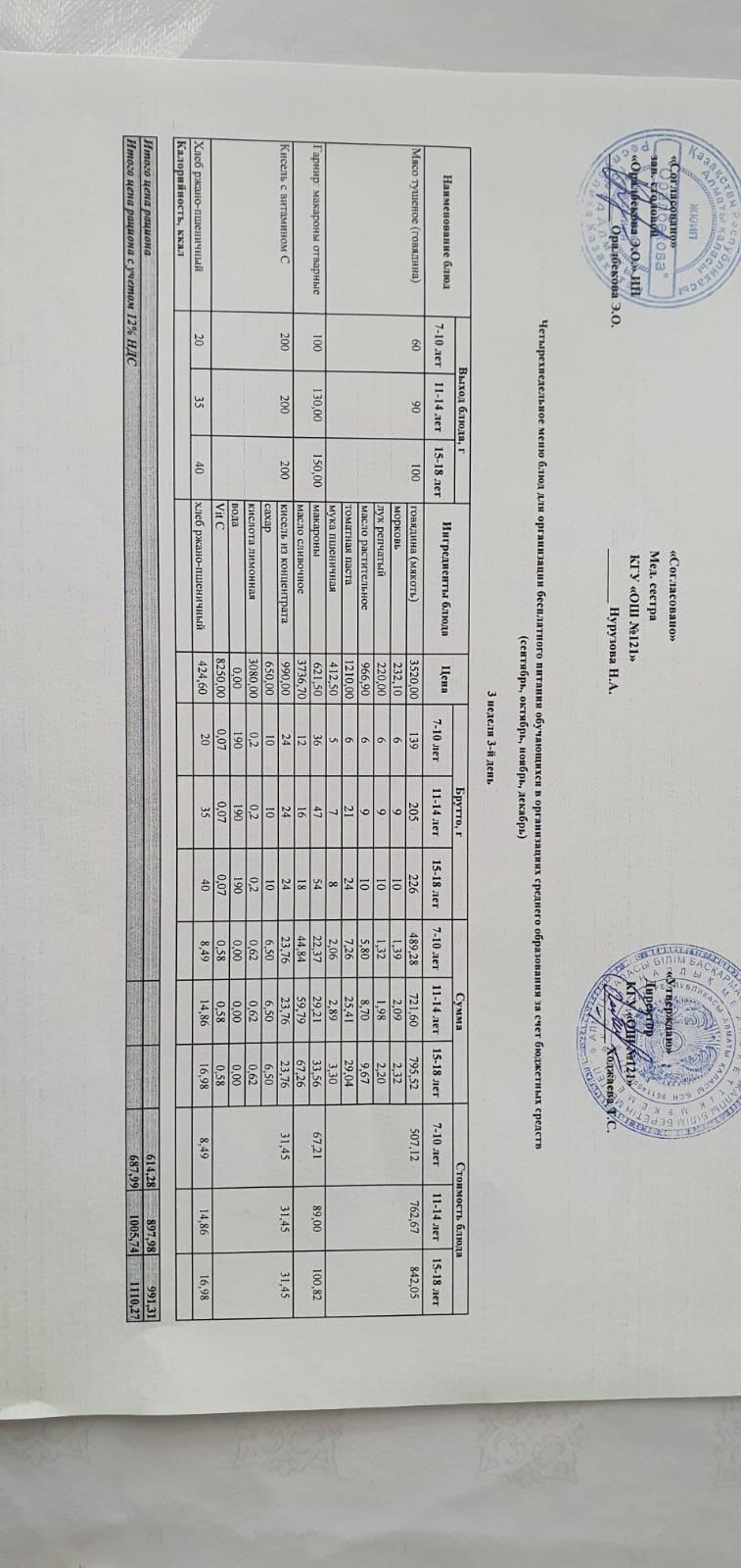 Меню 3 неделя среда