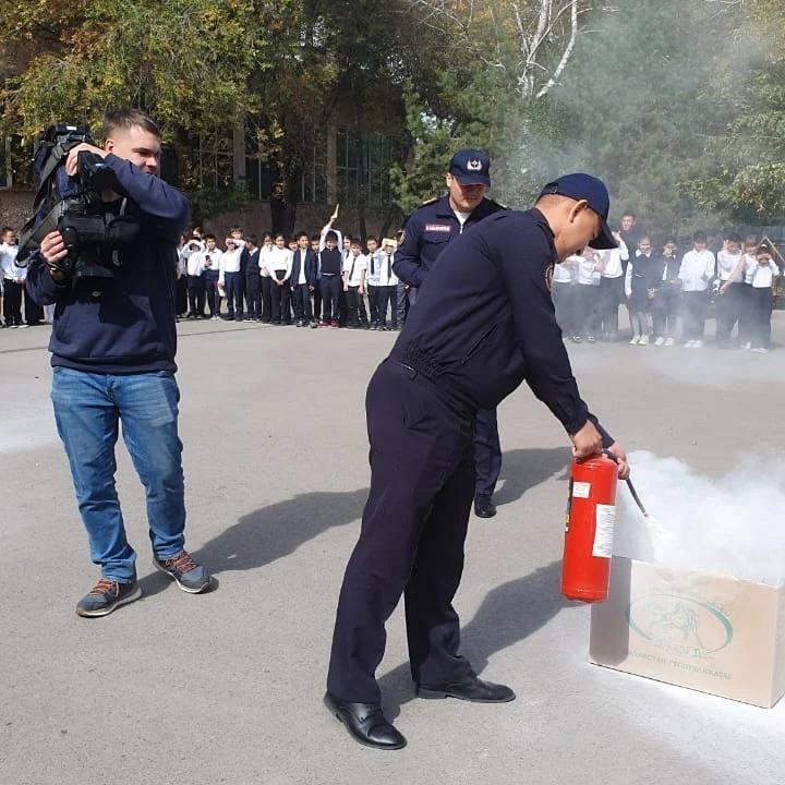 Мектептің 5-7 сынып оқушылары арасында «Арнайы құралдармен өрт қауіпсіздігі» тақырыбында іс-шара өткізілді.Олар төтенше жағдайларда және ғимаратта жер сілкінісі кезінде өзін-өзі ұстау Проведено мероприятие по Пожарной безопасности со Спец техникой среди учащихся 5_7 классов школы.Ознакомились с теорией правила поведения в ЧС ситуации и при землетрясениях в здании.
